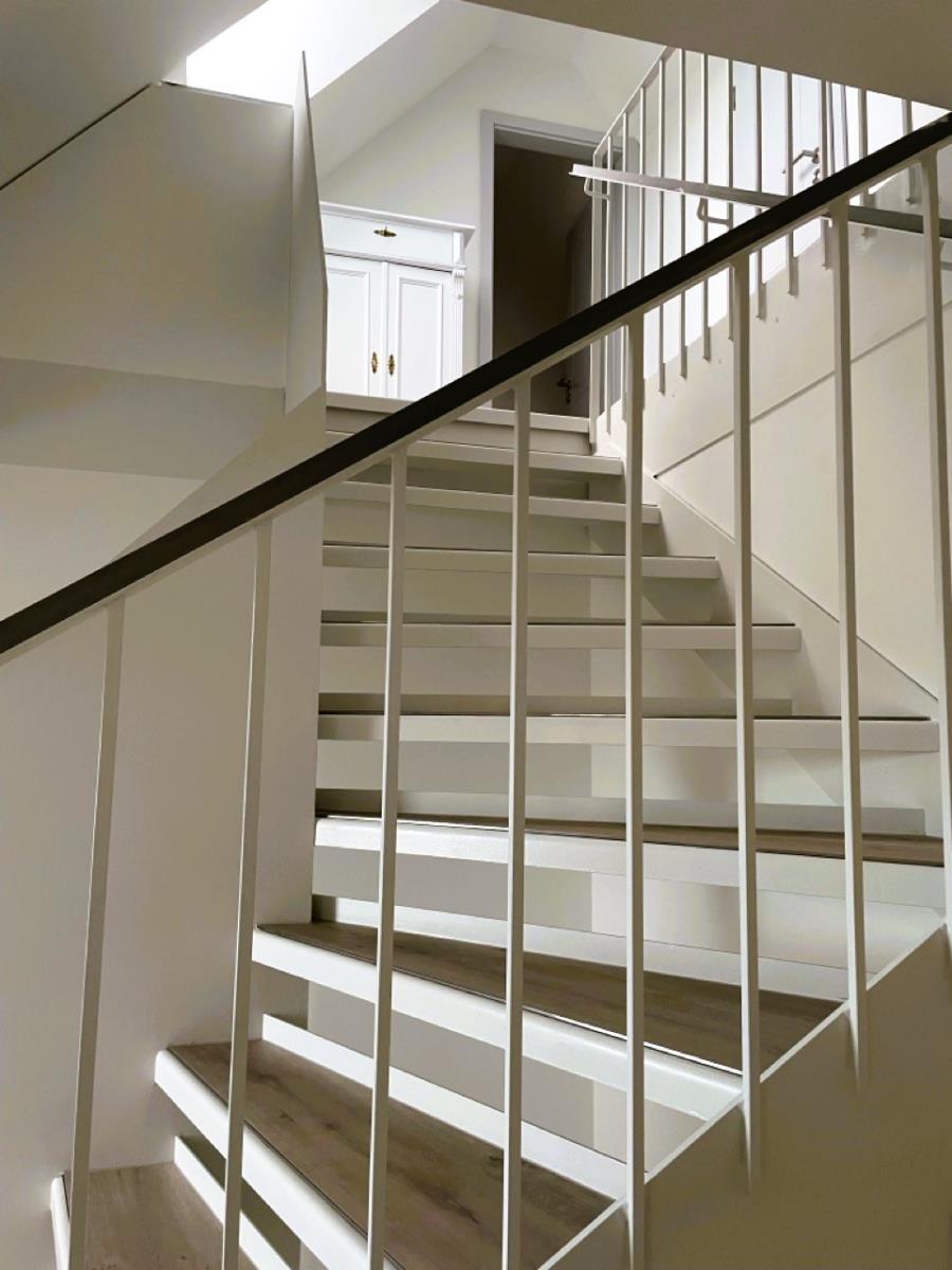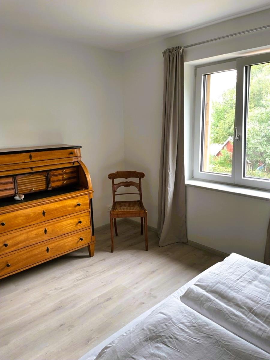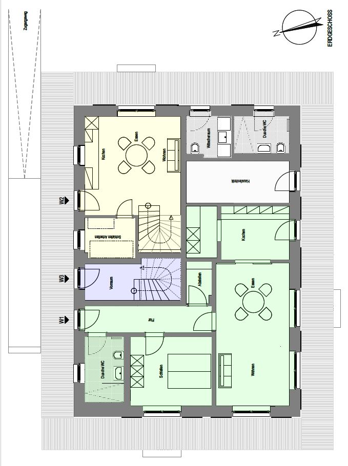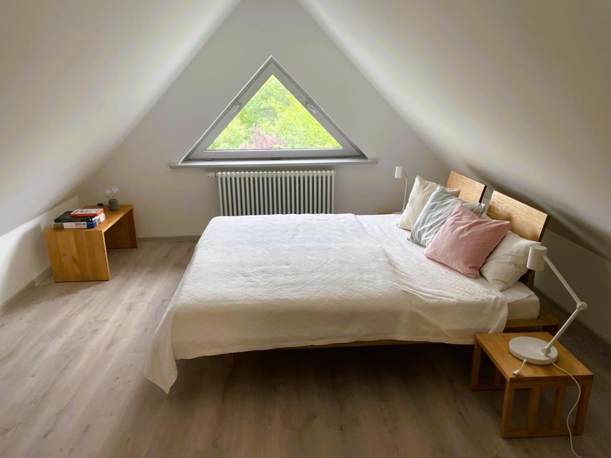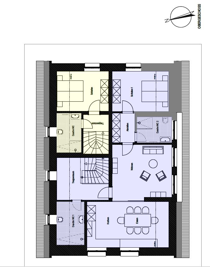 Die Wohnung “Luv & Lee” (WE3) befindet sich im Ober- und Dachgeschoss. Sie ist etwa 120 qm groß und kann von bis zu 6 Gästen genutzt werden. Die Wohnung bietet im OG ein Schlafzimmer Richtung Osten, zwei Bäder, ein Wohnzimmer Richtung Süden und eine Küche Richtung Westen sowie im DG zwei Schlafzimmer. Zugang zum großzügigen Holzumlauf des Hauses und den Garten hat man über den Eingang and der Nordseite des Hauses.